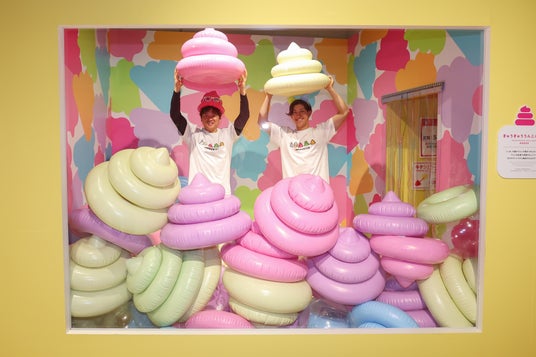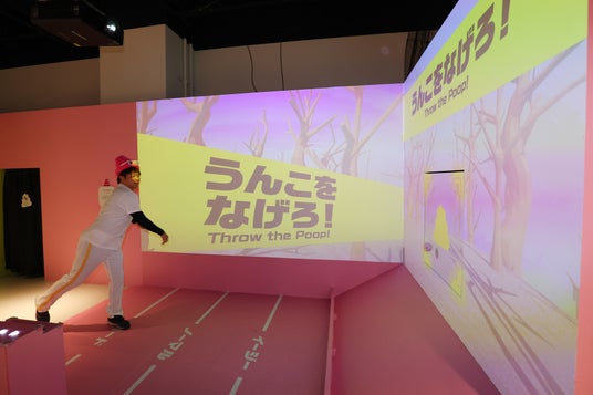 フォトジェニックエリア(通称ウンスタジェニックエリア)でお互いをスマホで撮影し合ったり、アトラクションエリア(通称ウンタラクティブエリア)では、新コンテンツ「うんこをなげろ」で、うんこを投げる強さを競い合い、楽しみました。