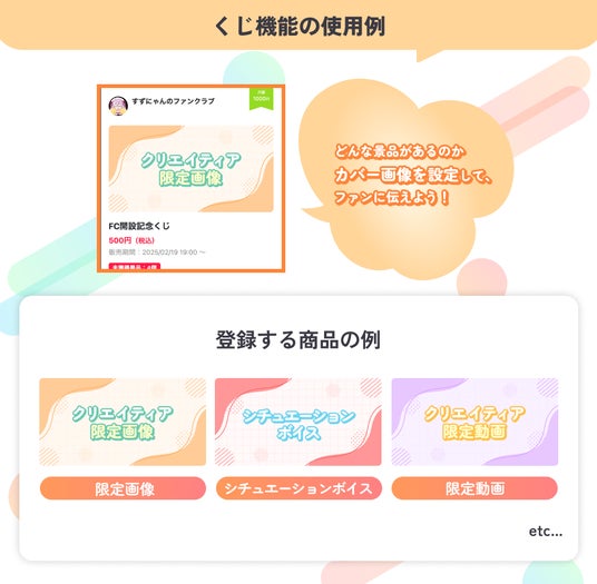 クリエイティア株式会社の展開する、クリエイターとファンを結ぶ月額制ファンクラブプラットフォーム「クリエイティア[Creatia]」(以下、クリエイティア)に、2025年2月25日(火)より「くじ機能」のサービスが実装されました。