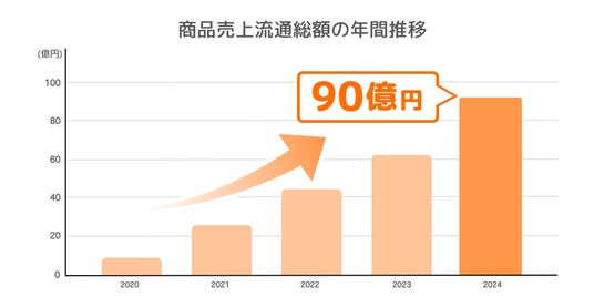○商品売上の年間流通総額: 約91億円