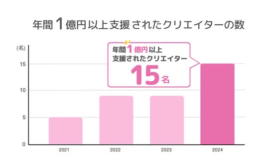 年間支援額”1億円”を突破したクリエイターが15名に