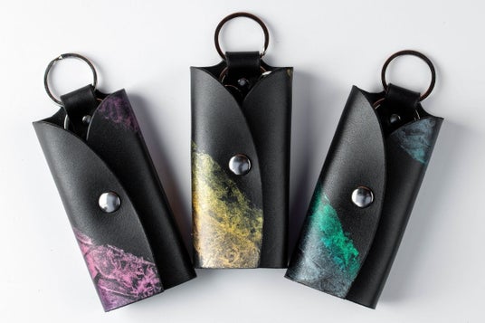 こすったり伸ばしたりしてもはがれにくいレザー塗装を研究し、一つひとつ丁寧に染色。外周11.5cmまでのスマートキーにも対応しています。