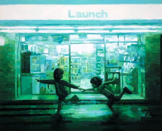 (読み:おおはたしんたろう)1975年、広島県に生まれた大畑は 日常にあふれる様々な「光」を捉え、何気ない風景を映画のひとコマのように描く画家です。その表現は作品の中に光源が仕込まれているのではないかと見まがうほど秀逸です。朝焼けや夕焼けなどの自然の光から、夜のコンビニエンスストア、明け方のファーストフード店の明かり、雨の日に濡れたアスファルトから照り返す光など、ありふれた光景を「光」を通してドラマティックに表現します。