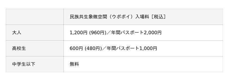 本展示の観覧料は、民族共生象徴空間(ウポポイ)の入場料金に含まれます。