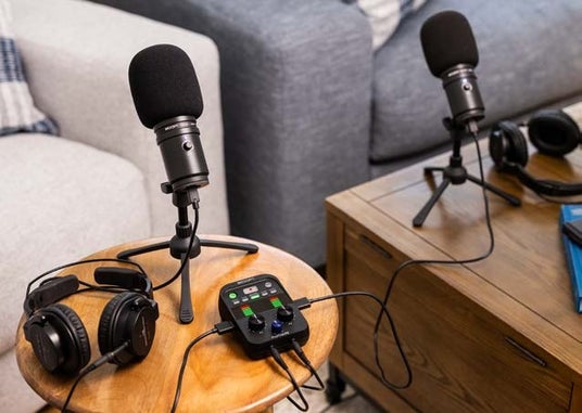 2つのUSBマイク入力と2つのヘッドフォン出力を備える、ポッドキャスト収録に特化したオーディオレコーダー。AIノイズリダクション機能で、バックグラウンドノイズを劇的に低減。