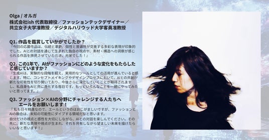 ◆株式会社ish 代表取締役・ファッションテックデザイナー・共立女子大学准教授・デジタルハリウッド大学客員准教授 / Olga氏