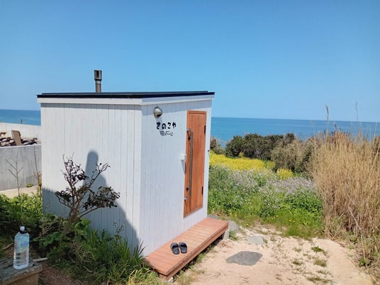 鳴り石の浜ネイチャーサウナ 新しい海サウナ体験が可能です。美しい夕日を眺めながら、海の景色を楽しみつつサウナ温浴、水風呂、そして潮風の外気浴を安全に楽しめます。