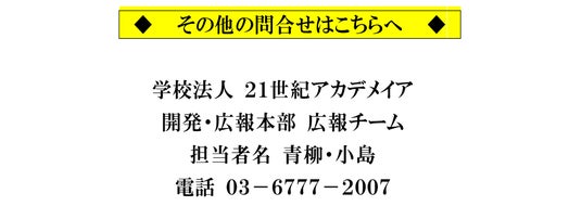 メールは、こちらから https://www.akademeia21.com/mail/ 問い合わせフォームは下記のフォームから https://www.akademeia21.com/contact/