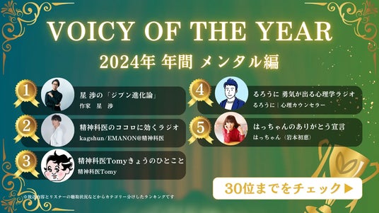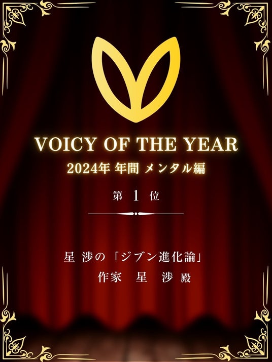 国内最高峰の音声配信プラットフォーム「VOICY OF THE YEAR 2024」発表!メンタル編グランプリは、ベストセラー作家星 渉の番組が受賞