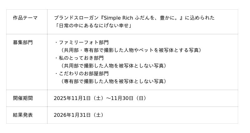 ヤマイチエステート株式会社(本社:大阪府大阪市中央区、代表:山田 茂)は、分譲マンションブランド『UNIHEIM(ユニハイム)』のブランドスローガン「Simple Rich ふだんを、豊かに。」をテーマに実施した「第2回フォトコンテスト」において、入賞作品14点を選出し、2026年1月31日に公式サイト(https://www.yueg.co.jp/mansion/photo_contest/)にて発表いたしました。