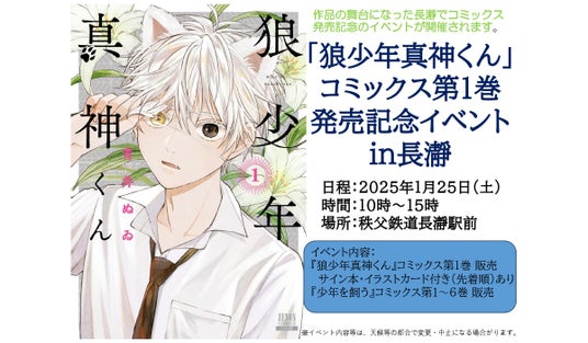 株式会社コアミックス(東京都武蔵野市)は、『狼少年真神くん』第1巻(青井ぬゐ)を1月20日に発売いたします。発売を記念し、舞台となる長瀞町で記念イベントを開催いたします。イベントでは、先着でサイン入りコミックスを販売し、イラストカードも配布いたします。