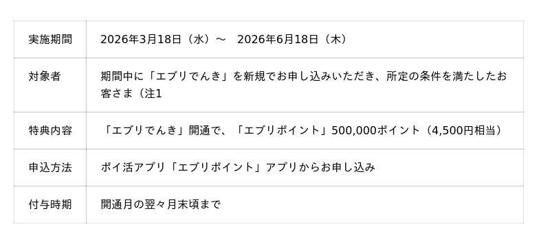 (注1 キャンペーンの適用条件・詳細は、「エブリポイント」アプリ内の「エブリでんき」詳細ページにてご確認ください。