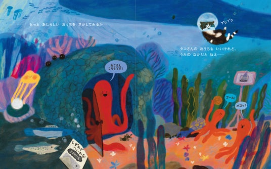 ある日、お気に入りの段ボールのおうちが「せまい」と感じた子ねこ。理想の家をもとめて、街から砂漠、海の中へと旅に出ますが、なかなか自分の理想のおうちは見つかりません……。各国で絵本賞を受賞したクァク・スジンが、ユーモアたっぷりに描く自分探しの物語です。