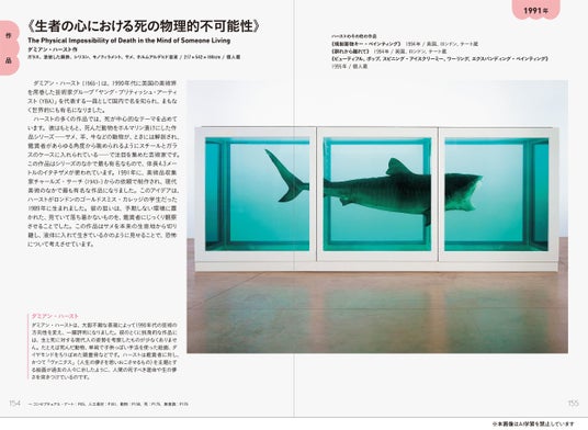 《牡牛の大広間》(ラスコー洞窟) / 《ミロのヴィーナス》 / ファン・エイク《アルノルフィーニ夫妻の肖像》 / ボッティチェッリ《春》 / ダ・ヴィンチ《モナ・リザ》 / ブリューゲル(父)《雪中の狩人》 / カラヴァッジョ《バッカス》 / ベラスケス《ラス・メニーナス》 / フェルメール《真珠の耳飾りの少女》 / フラゴナール《ぶらんこ》 / アングル《トルコ風呂》 / モネ《印象、日の出》 / スーラ《グランド・ジャット島の日曜日の午後》 / ゴッホ《夜のカフェ》 / ムンク《叫び》 / クリムト《接吻》 / ピカソ《アコーディオン奏者》 / デュシャン《泉》 / マグリット《恋人たち》 / カーロ《2人のフリーダ》 / ポロック《うねる小道》 / ウォーホル 無題、「マリリン」より / ハースト《生者の心における死の物理的不可能性》など