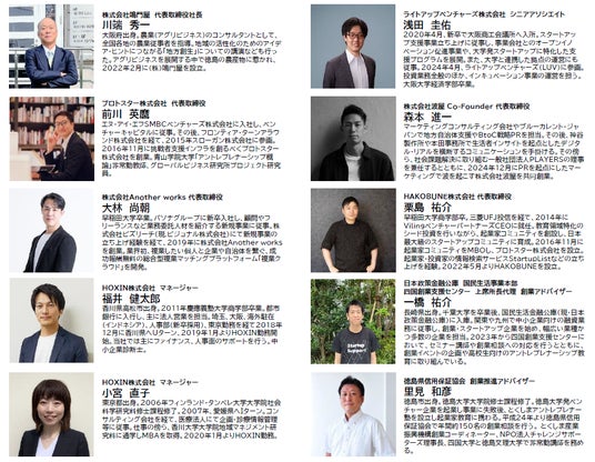 創業計画により選抜された6人が、鳴門市での現地プログラムである「セレクションプログラム」に参加できます。地元企業家との交流会や、金融機関からのフィードバック、エンジェル投資家やベンチャーキャピタルなどの投資家へ直接プレゼンテーションする創業計画ピッチコンテストなどを予定しております。