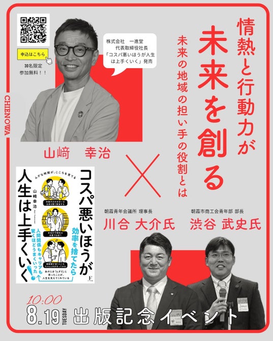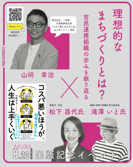 著者は、埼玉・朝霞で“人と人がつながる書店”を営む山崎幸治氏。書店業界という効率とは無縁の現場から見えてきた、非効率な行動の価値を語ります。発売を記念し、8月19日・20日の2日間、地域リーダーや教育者、企業家、学生、市長らを招き、全6回の対談イベントを開催します。