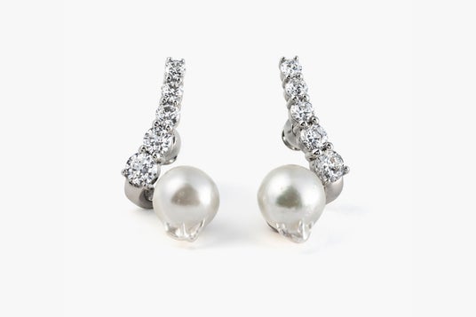 [Fluidity of Love] Fluid pearl earrings (pair), Fluid diamond ring 1ct