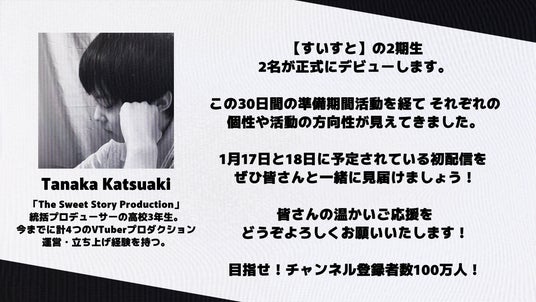 高校生ながら 今までに計4つのVTuberプロダクションの運営・立ち上げ経験を持つ。