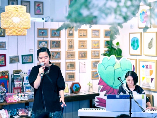嬉々!!CREATIVE代表北澤桃子と麻桜さんはずっと交流を続けており、麻桜さんの外出が困難だった時期も、サポーターの母と共に、これからの未来についていろいろとお話してきました。彼女を見守ってきた大人たちは、本展を開催できることをとても頼もしく思っています。