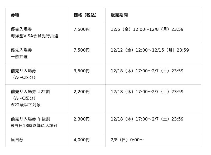 幅広い券種から選べる入場券は12月5日(金)より順次発売