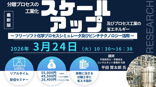 【ライブ配信/ZOOM】「分離プロセスの工業化スケールアップ及びプロセス工業の省エネルギー」セミナー開催!3月24日(火)主催:(株)シーエムシー・リサーチ