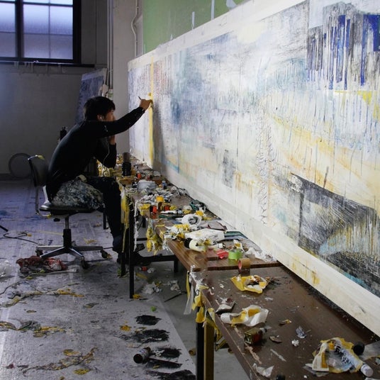 今回、過去の映像作品と合わせて摩擦や速度のダイナミズムをテーマにした絵画作品を発表予定。移動や加速で生じるエネルギーの痕跡をとらえ、動きと時間の残像を表現する。