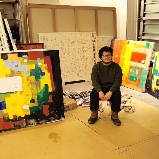 南 依岐(みなみ いぶき)アメリカと日本を中心に活動し、「芸術の核」をテーマに独自のアルゴリズムを駆使して抽象画を構築する。