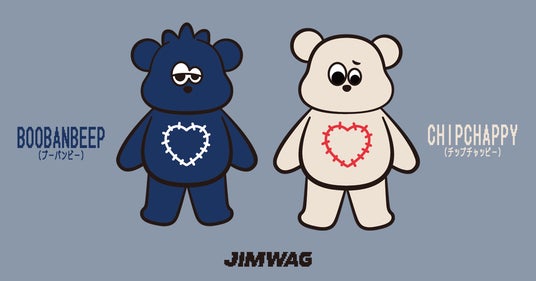 クマをモチーフにしたオリジナルキャラクターと「JIMWAG」を掛け合わせて誕生した「JIMBEAR(ジムベア)」。誕生したキャラクターの名前は、「BOOBANBEEP(ブーバンビー)」と「CHIPCHAPPY(チップチャッピー)」。それぞれの個性が溢れ、愛くるしいフォルムのJIMBEARから今後も目が離せない。