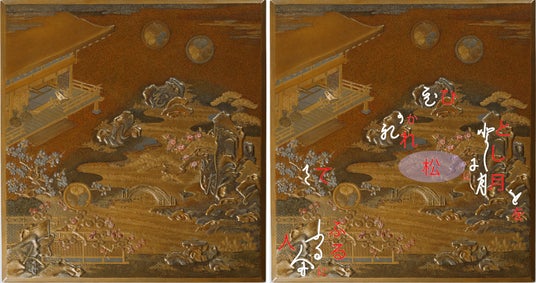 初音蒔絵硯箱(蓋表)の意匠で見る葦手文字の配置