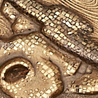 切金/薄い板金を正方形や長方形に切り、ひとつづつ貼り付ける技法。