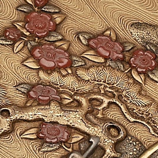 珊瑚貼付/珊瑚の彫刻を貼り付けた表現。全体をより豪華に演出する。
