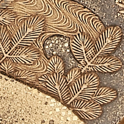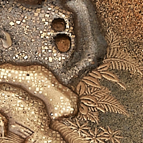 研出蒔絵/漆の上に金粉を蒔き、それを磨き出して模様を浮き上がらせる。