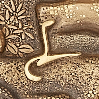 彫金埋込/文字を彫金で制作し蒔絵に埋め込む。漆工芸と金属工芸の両方の技術が必要。