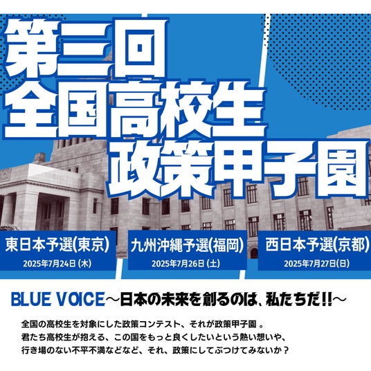 公益社団法人日本青年会議所(所在地:千代田区麹町2丁目12-1 VORT半蔵門7F、会頭:外口真大、以下「日本JC」)は、全国の高校生を対象にした政策コンテスト「第三回全国高校生政策甲子園」を開催いたします。