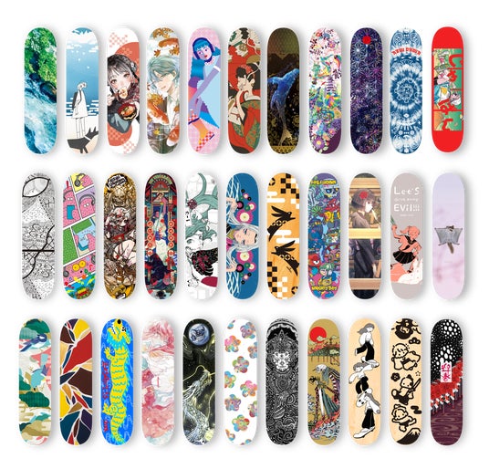 伝統的な和柄や日本のモチーフを、現代アーティストたちの感性で再構築したスケートボードデッキを展示します。作品はすべて国内工場で高精細にプリントされ、実際に滑ることはもちろん、インテリアとして飾って楽しむことも可能です。