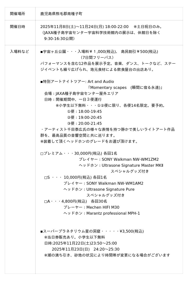 [種子島宇宙芸術祭2025] - [主催]種子島宇宙芸術祭実行委員会