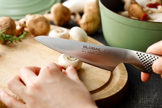 テーブルナイフで培った製造ノウハウを包丁に応用させるという発想から、刀身から柄までオールステンレス一体構造包丁の「GLOBAL」シリーズを1983年に発表。このかつてないコンセプトは、世界の包丁業界に新しく“オールステンレス包丁”というジャンルを形成するまでの衝撃を与えました。「GLOBAL」シリーズは発売から40年を越えた今日でも、色褪せることなく世界中のシェフやユーザーから高い評価と支持を受け続けています。