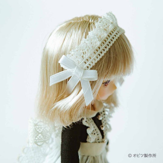 アンティーク調のレースを使ったヘッドドレスをつけて、横から見てもかわいい(レースはゴムになっているので、サイズ調節が可能です)
