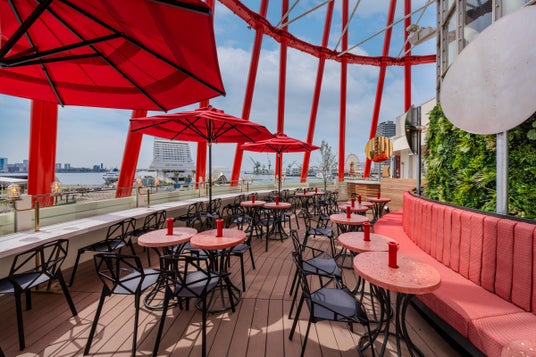 1)50万人達成した時点から先着50名へ「低層3・4階 レストラン・カフェ&バー『PORT TERRACE』50%OFFチケット」(株式会社クレ・ドゥ・レーブ提供)