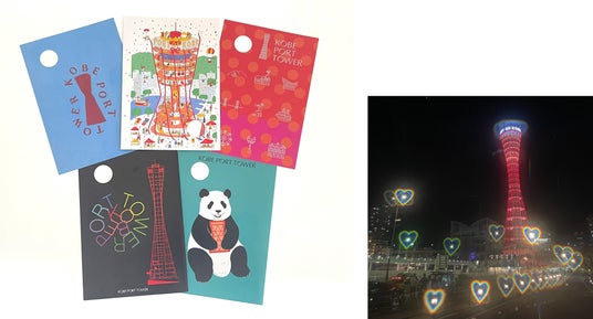「神戸ポートタワー オリジナル カードの丸穴から光源を見たらハートがいっぱい見えるフォロカード」(200円・税込み)は、神戸ポートタワーの展望5階や、展望2階のグッズショップ「Kobe Port Tower Shop by Felissimo」で1枚200円で発売しているオリジナルグッズです。神戸ポートタワーからの夜景など、カードの丸穴から光源を覗き見ると、光源がハートに見えます。スマートフォンのカメラレンズに「フォロカード」の丸穴を合わせ、夜景の写真や動画を撮ることもできます。