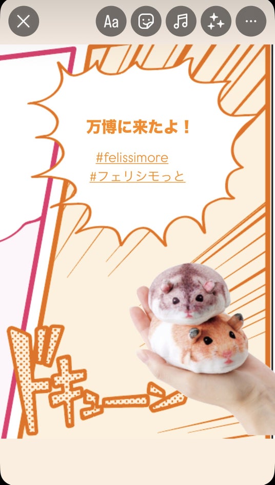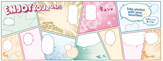 「お気に入り」と一緒に撮影ができるウォールアート。felissimore店舗内で見つけたお気に入りの商品や、推し活グッズをマンガのコマや吹き出しに合わせて撮影でき、大阪・関西万博やお店に来場したことをSNSで発信できます。吹き出しにセリフがないのは、あえての演出。撮影後、スマートフォンなどの画像加工機能で自由に言葉を入れて、自分だけの一コマを作って楽しめます。日本と海外のお客さまにすてきな時間をすごしていただける、マンガのデザインとなっています。