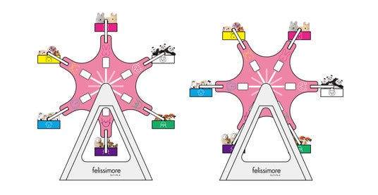 フェリシモの雑貨ブランドYOU+MORE![フェリシモユーモア]やフェリシモ「猫部」をメインとした、かわいい商品が観覧車に乗っています。その様子に思わずきゅんとすること間違いなし!