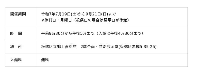 板橋区立郷土資料館において、令和7年7月19日(土)から9月21日(日)まで、展示「戦後80年 区民が生きた戦争の時代」を開催します。