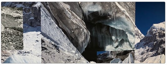 本作は、2024年秋、美術家・保良雄(やすらたけし)が、Goldwin Field Research Lab.お よび国際山岳ガイドのAshish Gurungと共に、ネパール・エベレスト地域で実施したリサー チの記録をもとに構成された作品である。現地では、そこに暮らす人々の生活、登山活動 によって蓄積される山のゴミ、そして氷河の変化についてのリサーチを行い、高地での生 活や労働、信仰、観光と登山産業がもたらす影響、さらには気候変動による氷河の後退な ど、自然環境と人間活動が交差する現場を観察し記録した。本作はその調査過程で撮影さ れた記録写真を用い、全長約18メートルにわたる長大な壁面をひとつのキャンバスとして コラージュし、山をめぐる人間の営みと、変化し続ける地表の時間を重ね合わせた試みで ある。また、本作は港北水再生センターで開催されている「TOTEM ORGA(H) /トーテム オルガ」展の思想に呼応した作品でもある。