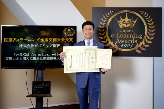 株式会社ビズアップ総研(本社:東京都港区、代表取締役:吉岡高広)の提供するWEB研修システム「e-JINZAI for medical welfare」と「e-JINZAI for finance」が、第22回日本e-Learning大賞において、「医療系eラーニング全国交流会会長賞」と「専門人材育成特別部門賞」の2部門でダブル受賞するという快挙を達成いたしました。11月17日(月)に都内で開催された表彰式では、当社代表取締役・税理士の吉岡高広が登壇し、表彰を受けました。