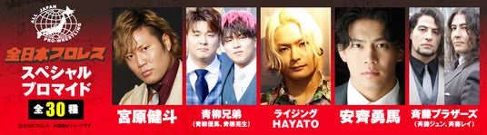 記念すべき第1弾は、全日本プロレスの所属選手7名のスペシャルブロマイド全30種!