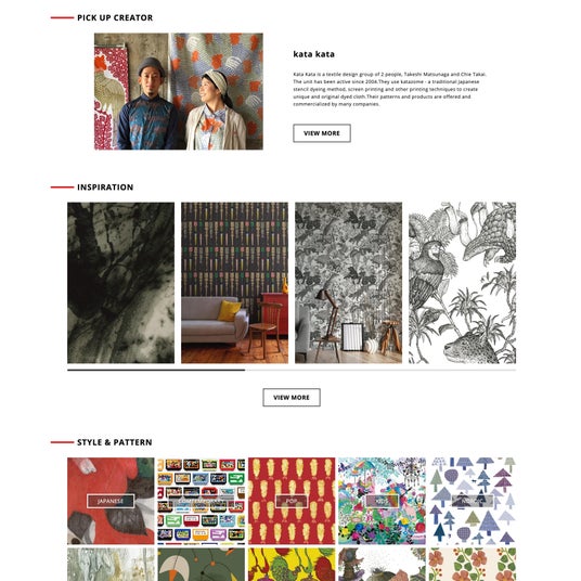 クリエイターの作品を際立たせるため、サイトはよりシンプルな設えにし、作品の魅力に触れるきっかけを提供できるよう画像主体でサイト全体を構成しました。商品画像だけを一覧で見せる「INSPIRATION」もその一環で新設されたページです。