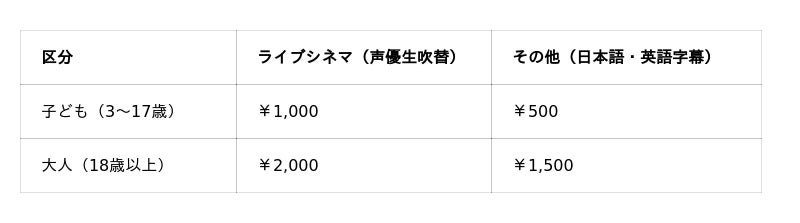 ・2歳以下は膝上鑑賞のみ無料。座席が必要な場合は子ども料金となります。