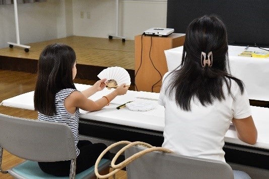 < 扇子に絵を描く様子 >