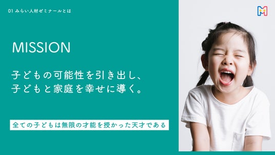 全ての子どもたちの才能を信じ、子どもと家庭を幸せに導くことをミッションとしています。