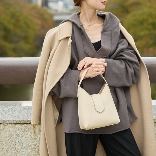 「フェズワンハンドルバッグ」はHASHIBAMI(ハシバミ)を象徴するアイテムのひとつ。2018年の販売開始当時より、デザイン性の高いフォルムと収納力の高さから常に高い人気を誇っています。シーズンごとにトレンドを取り入れた新色を展開し、2025年現在で累計30色以上をリリースしてまいりました。